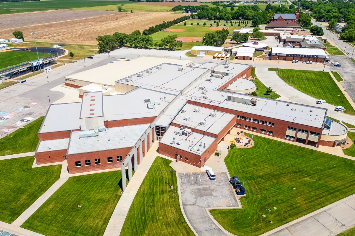 Buckley Roofing has worked with Renwick School District for over 10 years on roof maintenance. When an insurance claim was filed due to hail damage, Buckley Roofing was contracted to do a reroof at Andale High School.